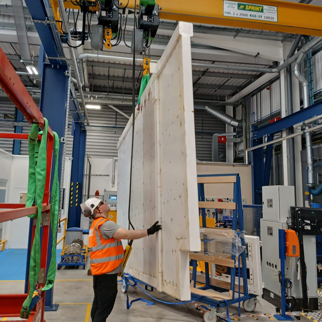To minimise disruption to John Crane’s ongoing operations, the bunkers were pre-assembled off-site and installed within a live, fully operational facility using specialist lifting equipment capable of manoeuvring large assemblies in confined conditions. The installation required precise coordination, as the new bunkers had to be constructed around existing equipment already in service. Working closely with the Client, Cairnhill planned and executed a phased installation strategy that maintained full operational continuity throughout the project.