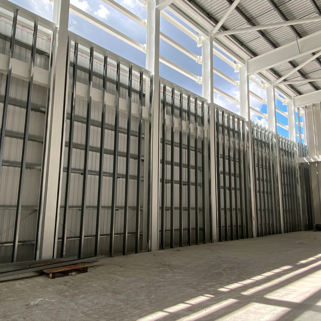 Design and Installation of 200mm Stud SFS infill to external walls, as well as 150mm infill to internal walls, including the supply and installation of 12mm cementitious sheathing board, cavity fill insulation, and Ancon wall channel to brickwork areas.