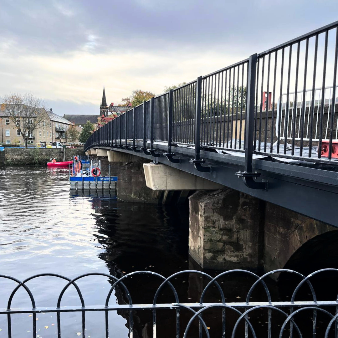 Working from the client’s detailed design, Cairnhill was responsible for the full manufacture and installation of the new footbridge, which was constructed alongside the existing road bridge. Given the age and heritage status of Otley Bridge, careful consideration was required at every stage to ensure that the new works were integrated safely and sympathetically without compromising the integrity of the historic structure. Close collaboration with Balfour Beatty was maintained throughout the project to manage risks and align on sequencing, access, and programme constraints.